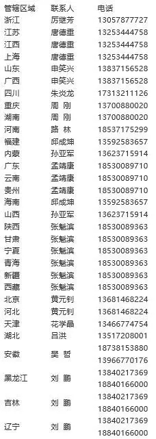 全国区域联系电话